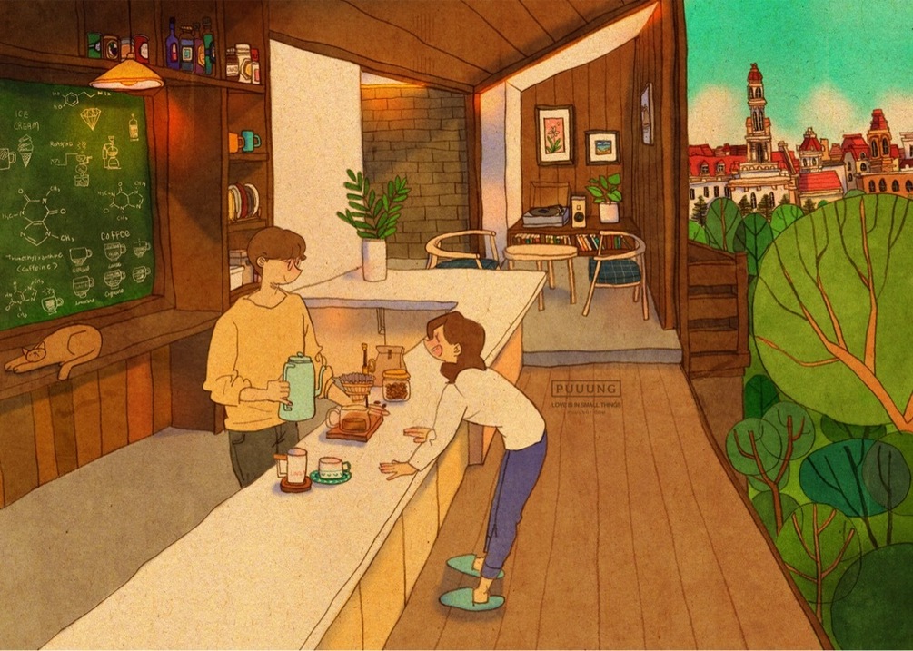 Love is in small things. I feel love is something that emits light from small things and comes in ways that we can easily overlook in our daily lives. So I work to find little moments of ordinary love and translate them into illustrations and animations.